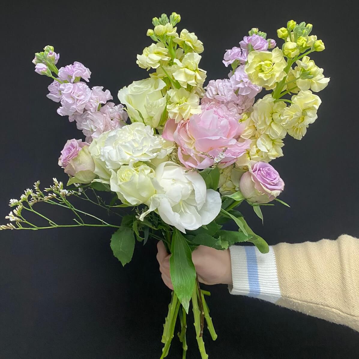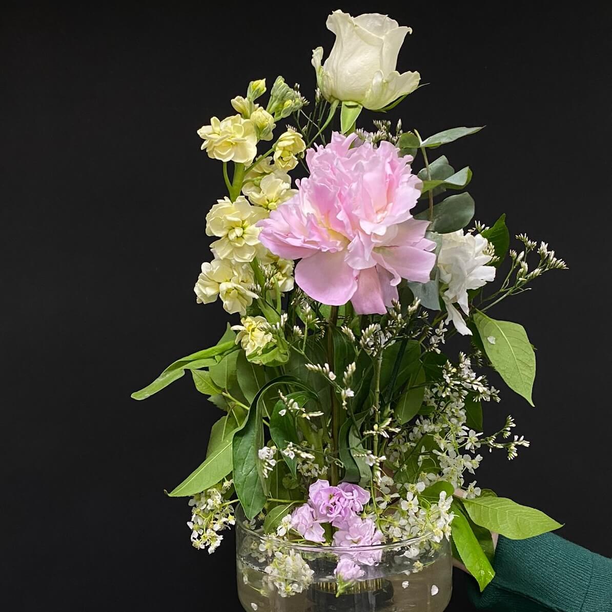 • Отработаете техники сборки букетов и создадите асимметричный букет.
